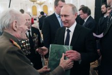 ОБЩЕСТВОВЛАСТЬЭКОНОМИКАВ СТРАНЕВ МИРЕПРОИСШЕСТВИЯОБЩЕСТВОСПОРТКУЛЬТУРА12+Владимир Путин поздравил ветеранов в Кремле 02.02.2013, 01:04 Опубликовать в блоге Версия для печати Прием в честь годовщины Сталинградской битвы в Кремле Вчера вечером в Большом Кремлевском дворце состоялся прием от имени президента по случаю 70-летия разгрома Красной Армией немецко-фашистских войск в Сталинградской битве.За столами с традиционными русскими закусками собрались ветераны Великой Отечественной войны - участники Сталинградской битвы, Герои СССР, представители военно-патриотических организаций - около 200